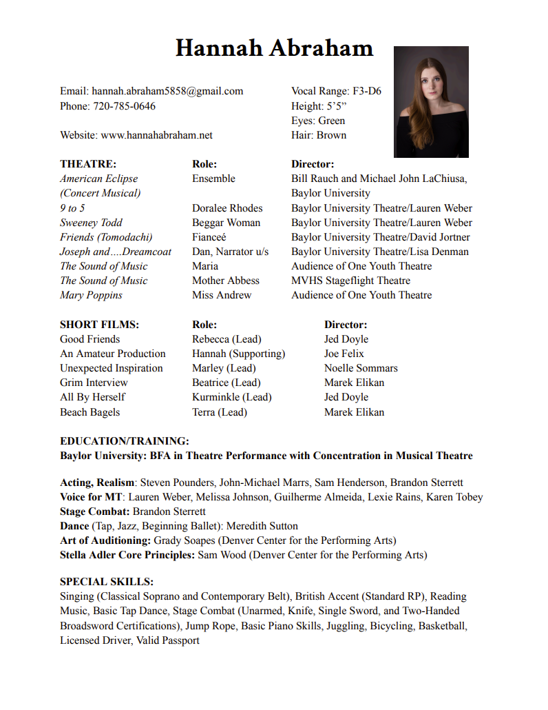 Download Resume Additional materials are available on YouTube here! Click here to go to more headshots!